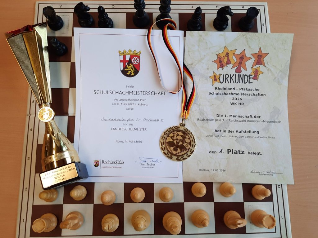 Am 14. März fanden am Max-von-Laue-Gymnasium in Koblenz die Rheinland-Pfälzischen Schulschachmeisterschaften statt. In der Wertungsklasse HR (Haupt- und Realschulen) gingen insgesamt sechs Mannschaften an den Start. Gespielt wurden fünf Runden Schweizer System mit 20 Minuten Bedenkzeit pro Spieler ohne Zeitzugabe. Die Realschule plus am Reichswald war mit zwei Teams vertreten.