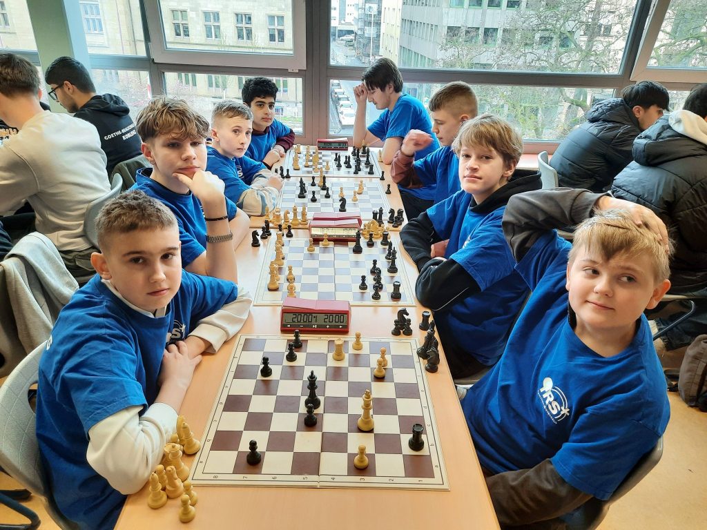 Brett 1: Bei Daniel Hoof blieb die Partie lange ausgeglichen, sein Gegner hatte jedoch mehr Restzeit. Ein Remis hätte gereicht, doch Daniel wollte den ganzen Punkt. In den letzten zwei Minuten leitete er in ein gewonnenes Endspiel über, verwandelte seinen Mehrbauern zur Dame und setzte – unter großem Mitfiebern der Mannschaft – seinen Gegner matt. Seine Blitz- und Nervenstärke gaben den Ausschlag – 4:0.