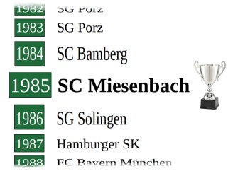 Der SC Miesenbach schaffte 1985 die Sensation und wurde deutscher Pokalsieger. Danach bekam man das Angebot die deutschen Pokalmeisterschaften auszurichten, was der Verein aber ablehnte.